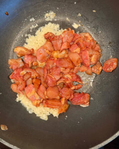 • Voeg hier de kip aan toe en bak rondom goudbruin.