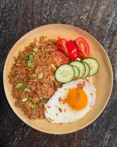 Als ik aan Indonesische nasi goreng denk, denk ik meteen aan Bali. Aan warme ochtenden, slippers, en een bord dampende nasi goreng als ontbijt. Ja, als ontbijt. En geloof me: als het even kan, eet ik gerust drie keer per dag warm. Dus ontbijten met een goede nasi goreng? Absoluut geen straf.