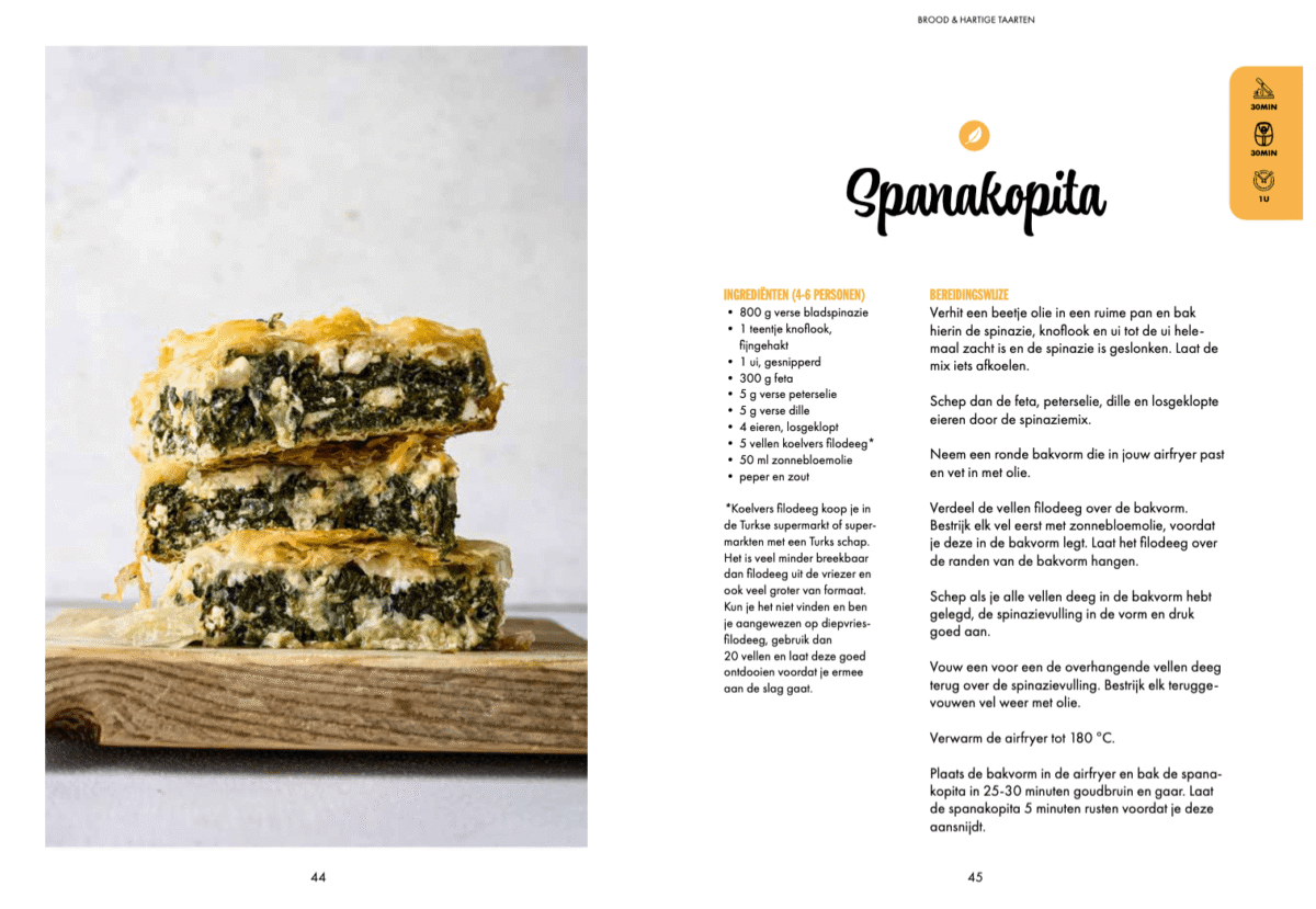 In ‘Het airfryerboek’ leer ik je hoe je met een airfryer de allerlekkerste gerechten op tafel kunt zetten. Zet bijvoorbeeld binnen een mum van tijd een Texaanse traybake met spareribs op tafel, maak een spinazie-champignonquiche of ga voor sambal goreng tempé. Uit de airfryer? Ja, het kan echt! Met ‘Het airfryerboek’ leer je alle tips en tricks om alles uit je airfryer te halen en maak je moeiteloos heerlijke gerechten.