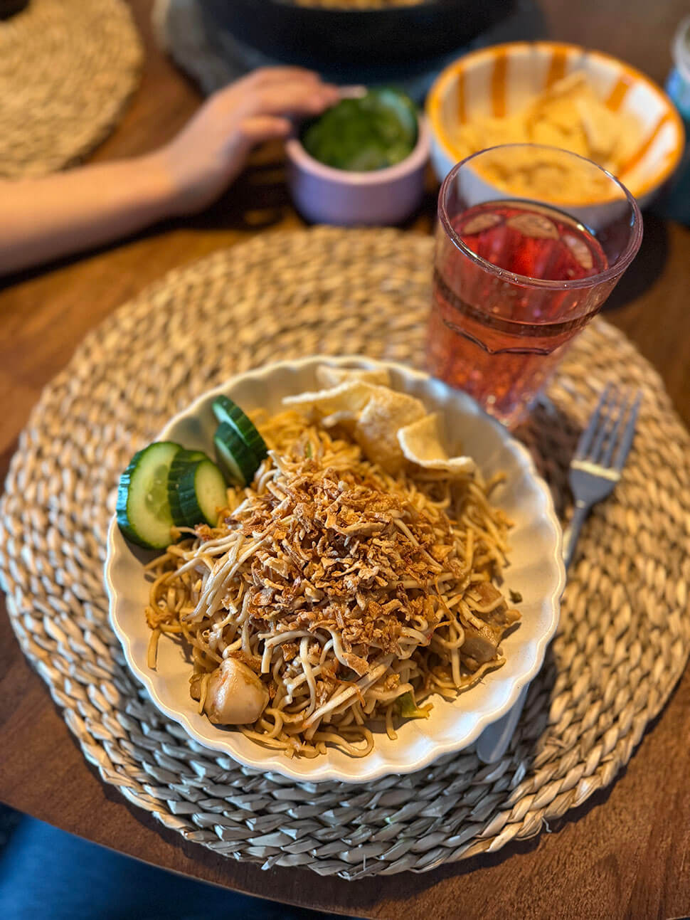 De maandag bracht ik door in de keuken en een van de gerechten die ik maakte was Bami Goreng. Dat kon mooi door voor het avondeten, bami laat zich lekker makkelijk opwarmen. We aten er cassave en komkommer bij.