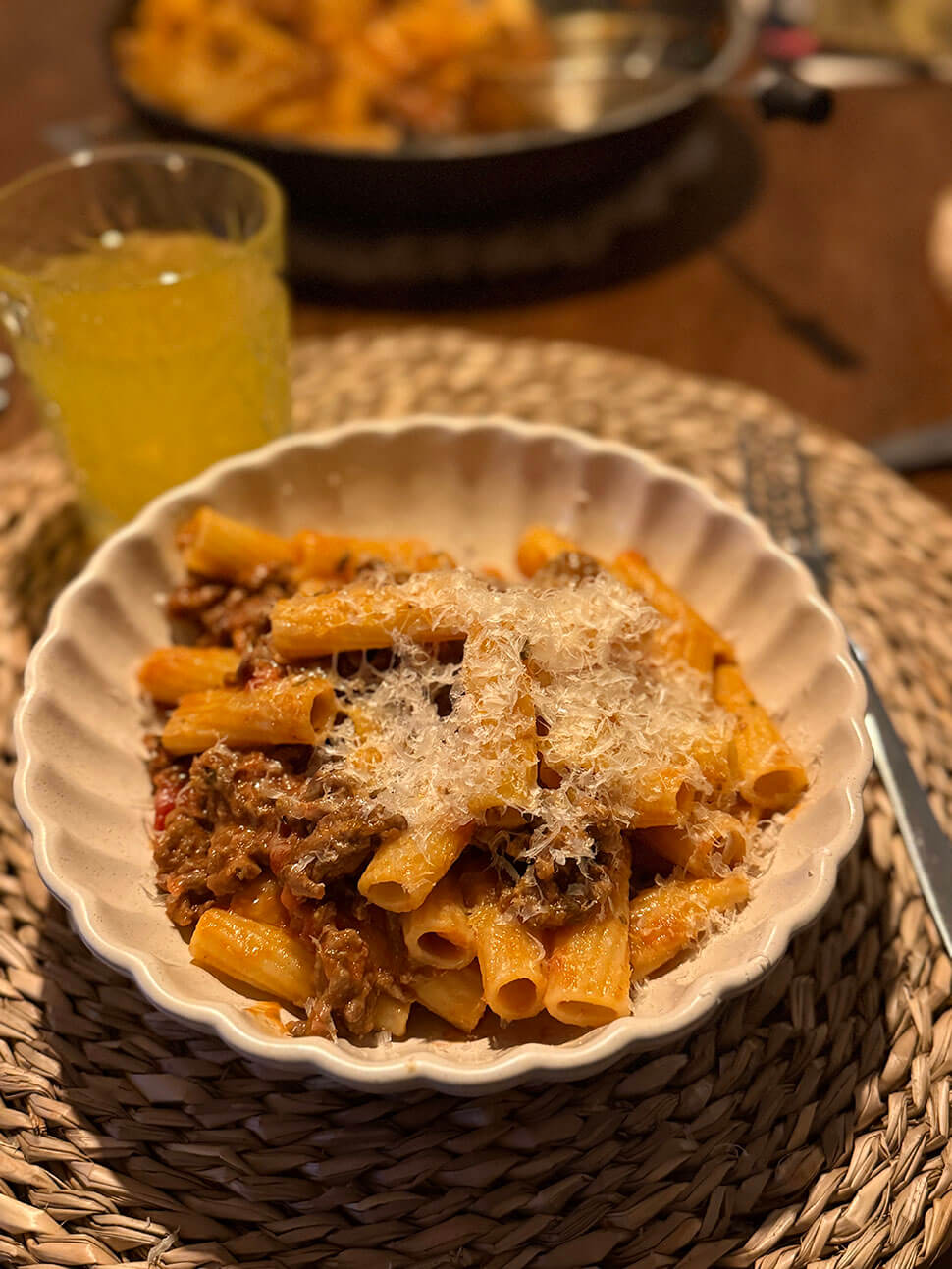Ik had vrij laat op de middag rijles en was pas tegen 18.00u thuis. De jongens zijn deze weken bij mij, dus ik wilde iets eten wat heel snel op tafel te zetten was. Het werd uiteindelijk pasta met gehakt en bolognesesaus (niet zelf gemaakt helaas). Super simpel natuurlijk, maar de kinderen schuiven het vlot naar binnen en dat is soms bijzonder handig.