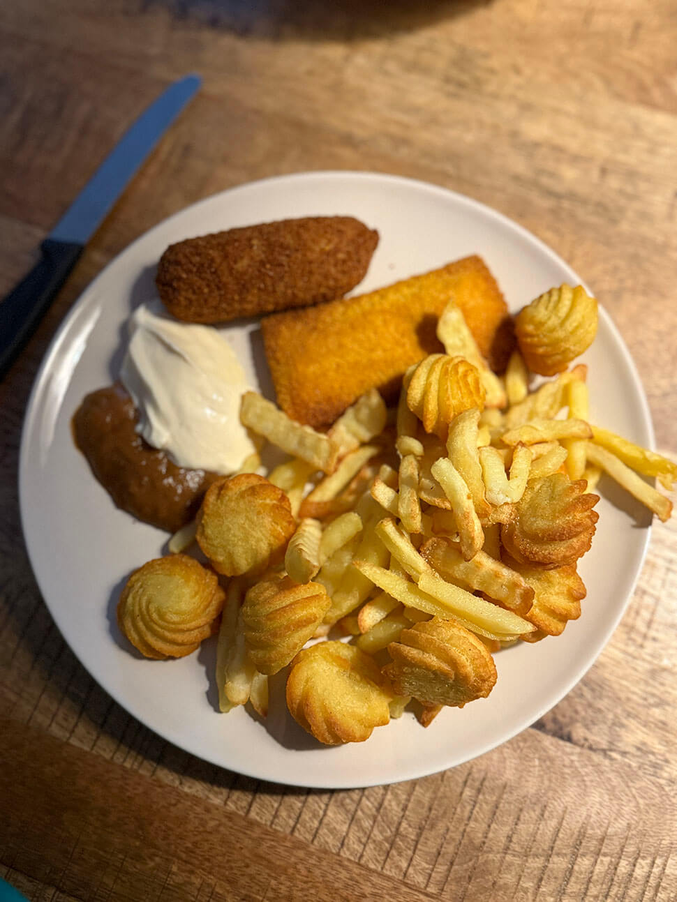 Ik had zaterdagmiddag een verjaardag van een van mijn vriendinnen en zij bouwde, zoals altijd, een heel buffet op in haar keuken. Vol met (Turkse) lekkernijen. ’s Avonds had ik, en manlief overigens ook, weinig zin in iets inspirerend dus doken we zijn vriezer in en besloten we open zakken met friet en snacks op te maken.