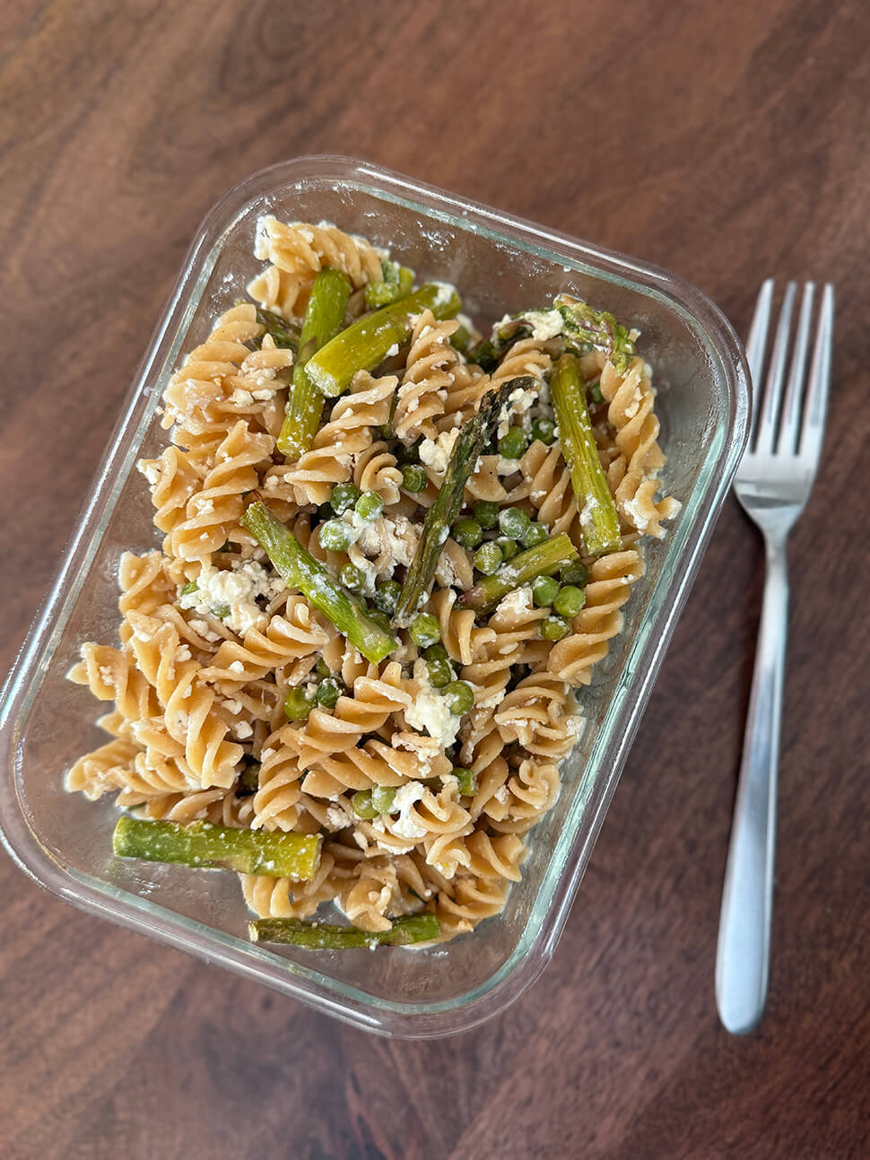 Donderdagmiddag stond mijn AVB-examen gepland (geslaagd – woohoo!) en de man had een barbecue gepland staan, dus ik at alleen. Gelukkig had ik de hele ochtend al in de keuken gestaan, dus hoefde ik het eten alleen nog maar op te warmen. Ik at deze feta pasta met groene asperges.