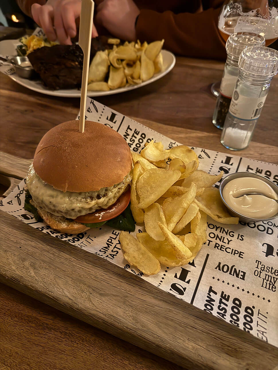 Om de vakantie af te sluiten gingen we zondagavond met z’n tweetjes uit eten. We hadden een tafel gereserveerd bij Eetcafé Fijn in Apeldoorn en ik koos voor de burger. Die was onwijs lekker, zo sappig. En de frietjes bij Eetcafé Fijn zijn altijd zó goed. Tipje, als je ooit eens in Apeldoorn bent.