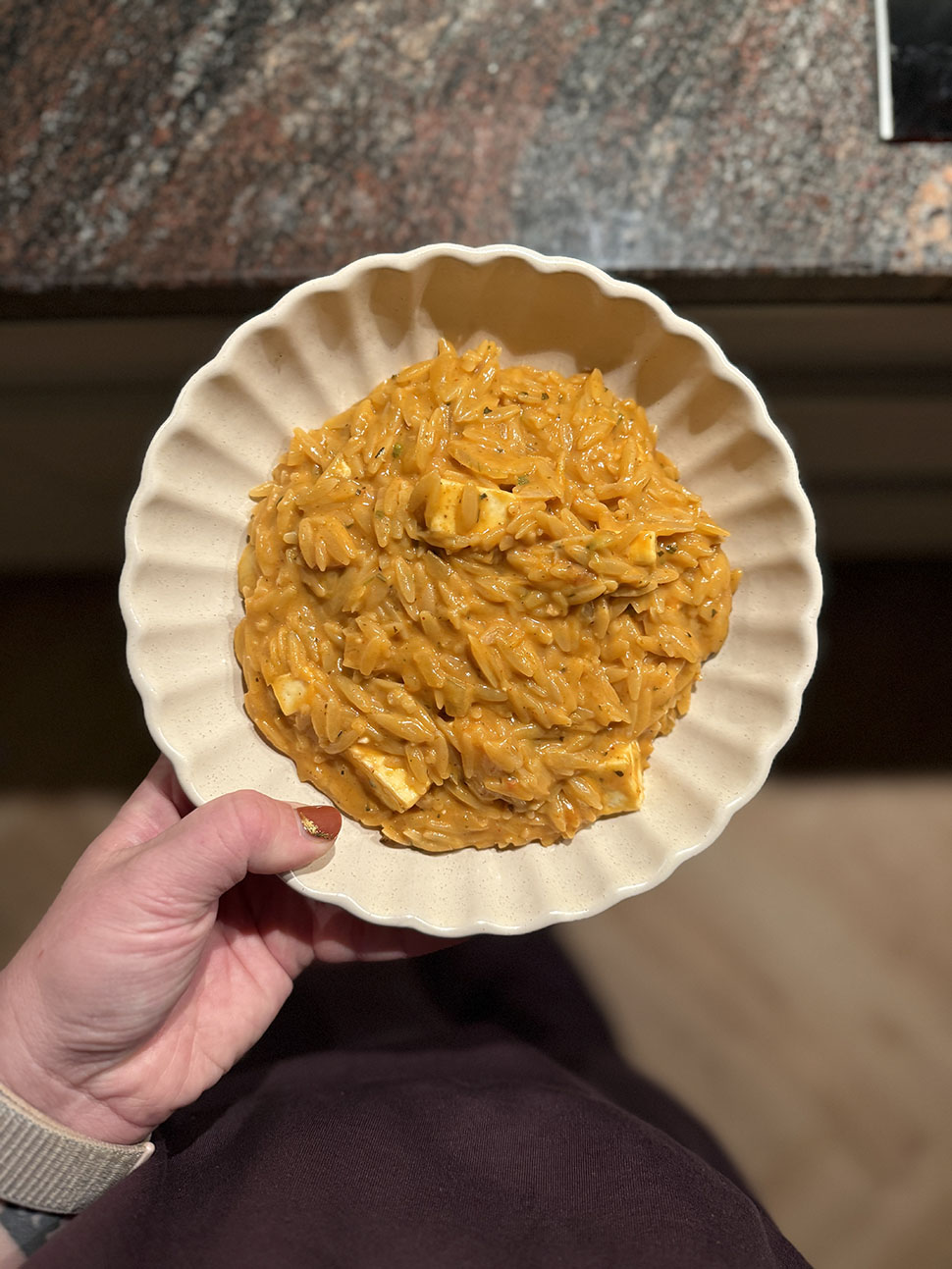 Op het Instagramaccount van Indi zag ik een lekker recept voor orzo met rode pesto voorbij komen en dat was nou precies waar ik zin in had. Ik heb het recept wel een beetje omgebouwd en vooral gekookt met dingen die ik nog in huis had, dus dit werd een variant met rode pesto, halloumi en Philadelphia bieslook. Erg lekker was het, zo romig! De jongens vonden het ook lekker, dus de hele pan ging leeg. Win win.