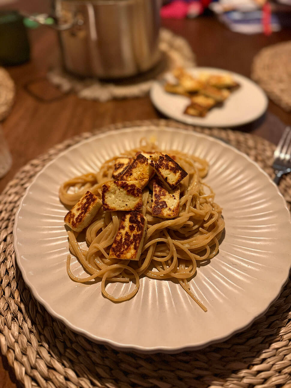 Maandag waren we weer thuis en moesten we er gewoon weer aan geloven natuurlijk. Ik besloot een hele simpele pasta in elkaar te draaien voor mij en de jongens, namelijk deze spaghetti carbonara met gebakken halloumi. Ik gebruikte er volkoren spaghetti voor, maar dat vond ik toch een minder groot succes in het geval van deze specifieke pasta. Volgende keer de normale als ik carbonara maak!