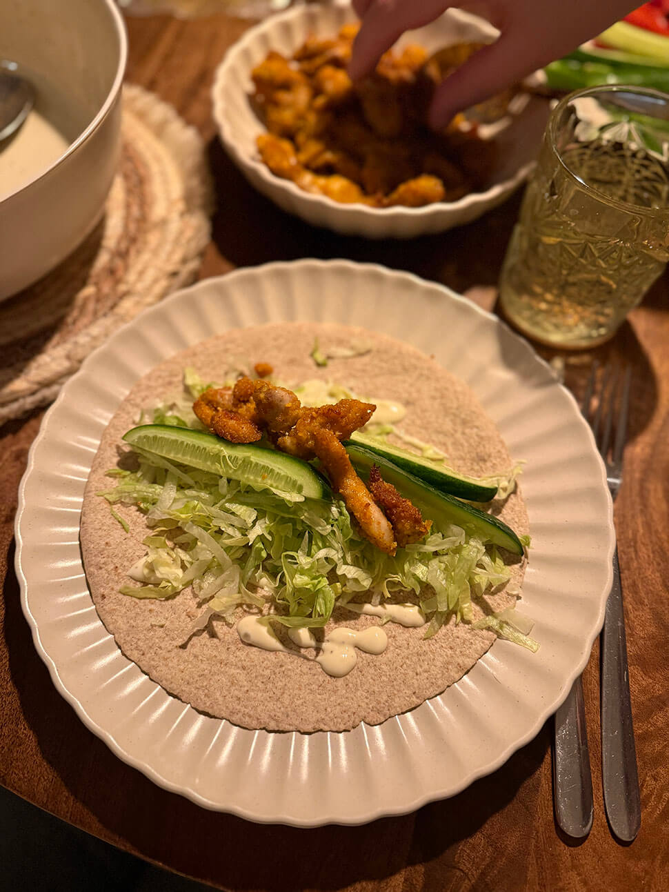 Zaterdag vierden we Cody’s ‘grote mensen verjaardag’ en uiteraard mocht hij kiezen wat we zouden eten. Meneer koos, verrassend – not, voor poffertjes. Nu hadden wij als volwassenen (mijn vriendin bleef ook eten) daar niet zoveel zin in, maar gelukkig had ik genoeg in huis voor het maken van wraps. Dat werd dus ons avondeten – prima!