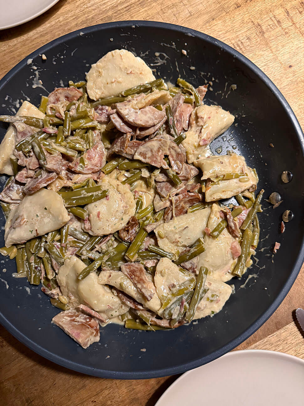 Woensdag was laat, zoals iedere woensdag. Nadat ik de jongens had afgezet bij hun vader, reed ik met hond en spullen naar het huis van mijn lief. En uiteraard nam ik eten mee. Woensdag was dit een Pools gerecht: Pierogi met Kielbasa. We eten eigenlijk nooit iets uit die landen, maar dit smaakte echt goed!