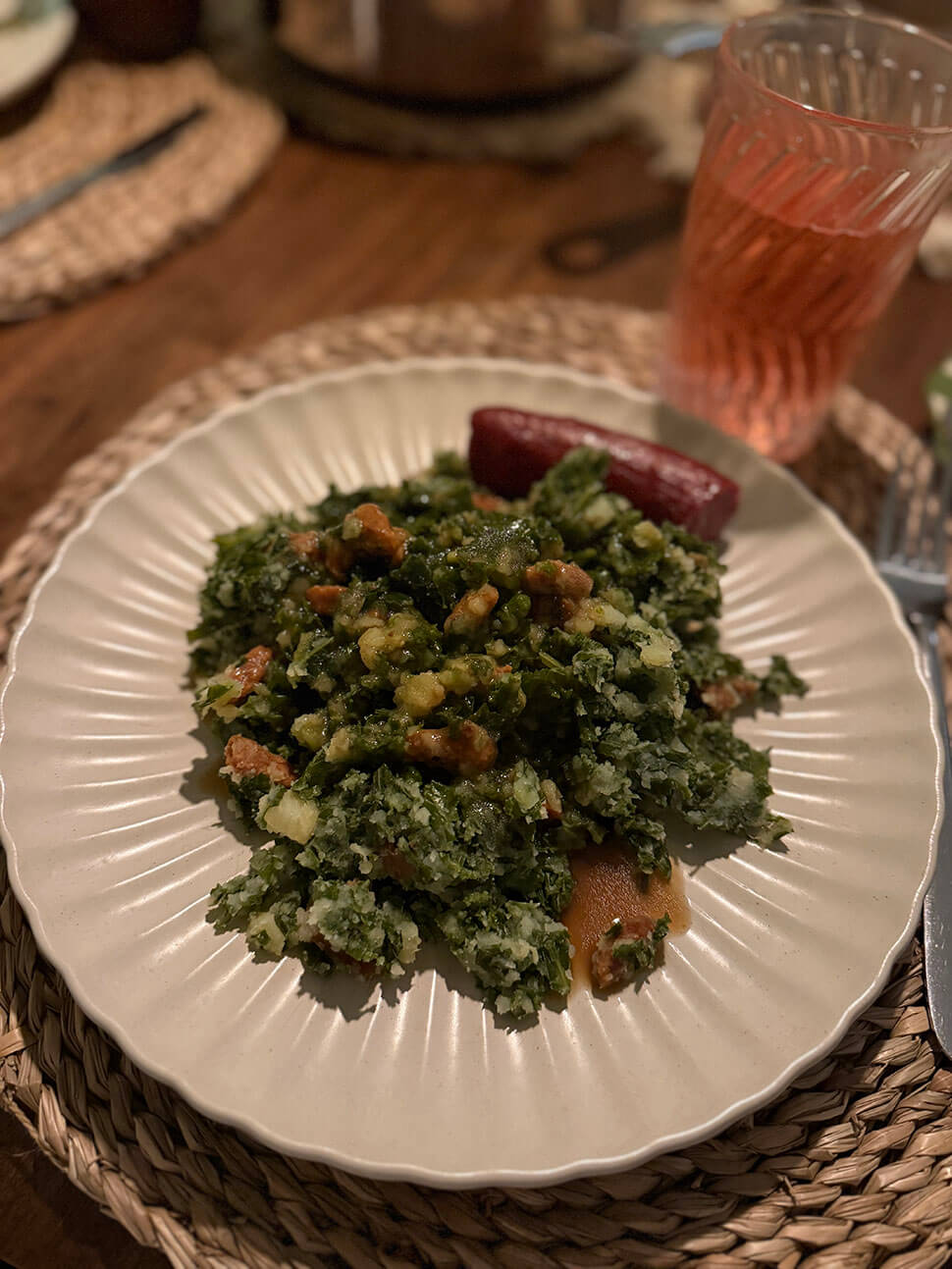 Omdat de boerenkool maandag niet werd gekozen, aten we die dinsdag. Ik wou zeggen: past perfect bij het weer, maar zo koud was het afgelopen week natuurlijk helemaal niet. Desalniettemin viel het alsnog goed in de smaak; Vic (8) at er een gigantisch bord van leeg haha.