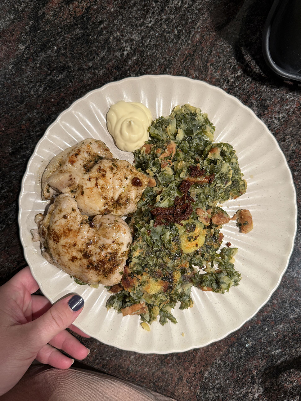 Na een dag op kantoor reed ik richting het eind van de middag vanaf omgeving Zwolle weer naar huis om te padellen met mama. In de koelkast stond nog een restje boerenkool, die warmde ik daarna op als avondeten. Twee kippendijtjes die ook nog in de koelkast lagen erbij; prima maaltje!