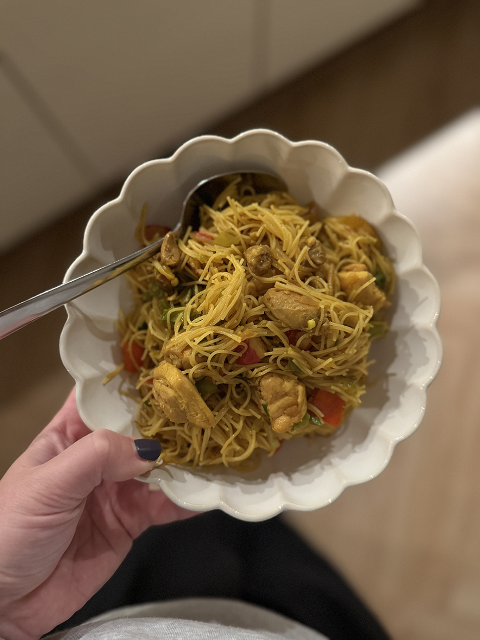 Eigenlijk stond er een kerstdiner van mijn werkplek (Workmode) op de planning, maar zonder een greintje energie in mijn lijf, leek me dat niet zo’n sterk idee. Omdat ik hoopte dat een beetje eten IETS van energie zou geven, at ik een bakje met pasta aan het eind van de middag. Dit was direct genoeg voor de rest van de dag maar hé, het is beter dan niets.