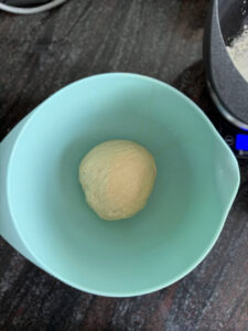 Doe de gist, bloem en het zout in de kom en kneed het geheel in enkele minuten tot een zacht deeg. Het deeg is goed als de randen van de kom schoon zijn.