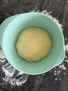 Het deeg maak je door boter, suiker, ei en karnemelk te mengen met bloem en gist. Dankzij de gist krijgt het deeg een mooie luchtige structuur. Nadat je het deeg hebt gekneed, moet het eerst een tijdje rijzen zodat het volume kan verdubbelen.