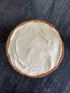 Deze Zwitserse room wordt vervolgens over de gebakken vlaai verdeeld. Daarna moet de vlaai een tijdje in de koelkast zodat alles goed kan opstijven.